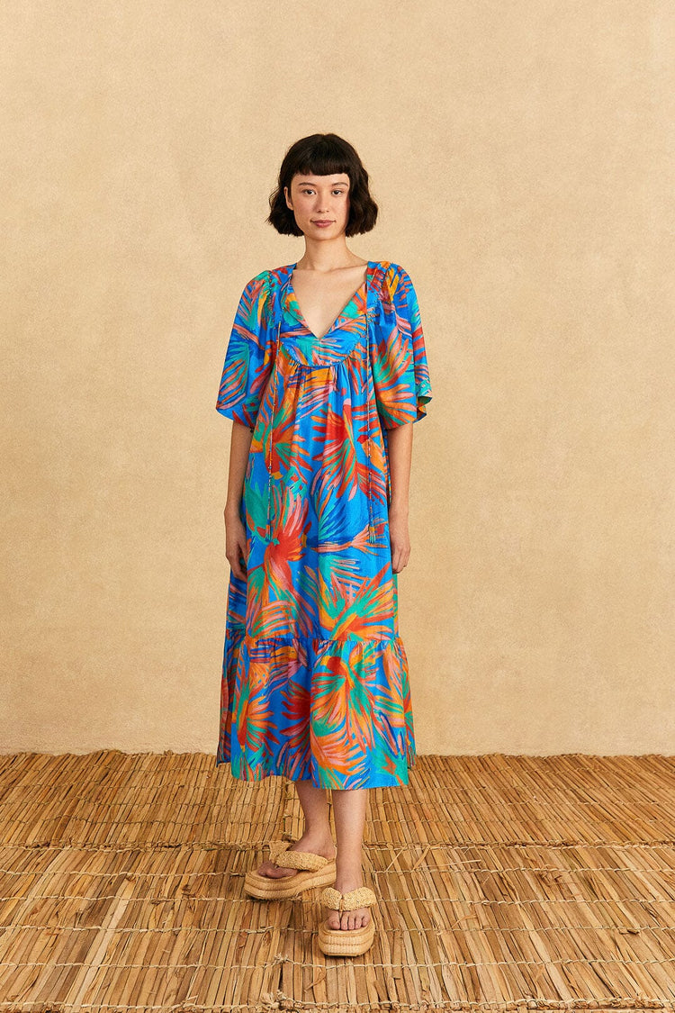 Women’s summer wardrobes all too often follow the same pattern of basic cover-ups. Don’t blend in. Make a statement with Farm Rio’s Blue Painted Bird Maxi Cover-Up. Its unique hand-painted artwork and full, tiered ruffle skirt design make this eye-catching, beautiful piece stand out from the rest. With its deep V-neck and adjustable spaghetti straps, this cover-up offers complete comfort and a great fit while giving you a naturally glamorous silhouette. Official your summer beach looks with the Blue Painted Birds Maxi Cover-up from Farm Rio; turn those heads and feel the delight of actualizing amazing style.